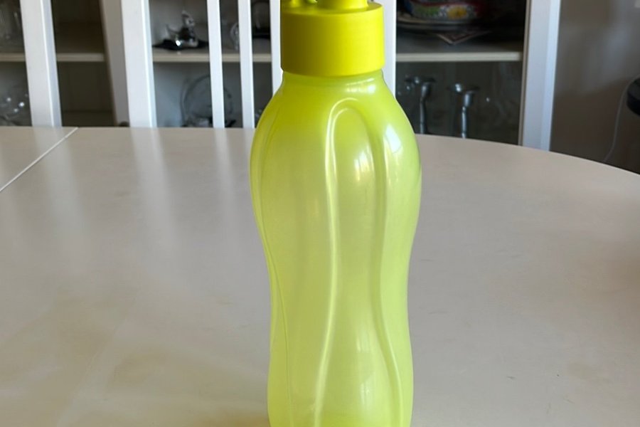 Tupperware flaska i limegrön färg. Flaskan har ett lock med en praktisk drickpip. Aldrig använd 750 ml . Jag skickar i slutet på veckan