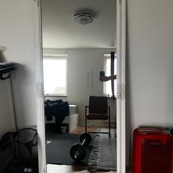 En stor spegel med en vacker, detaljerad ram. Perfekt för att addera en elegant touch till ditt hem.