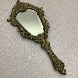 En vacker antik handspegel med detaljerad design. Perfekt som en dekorativ inredningsdetalj eller för daglig användning. 29 cm