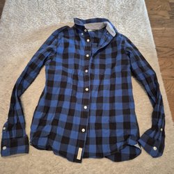 Blå mjuk skjorta i strl 164 med rutor på. Fint skick!