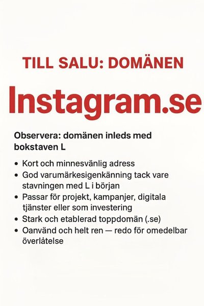 Till salu: Domännamnet Lnstagram.se.