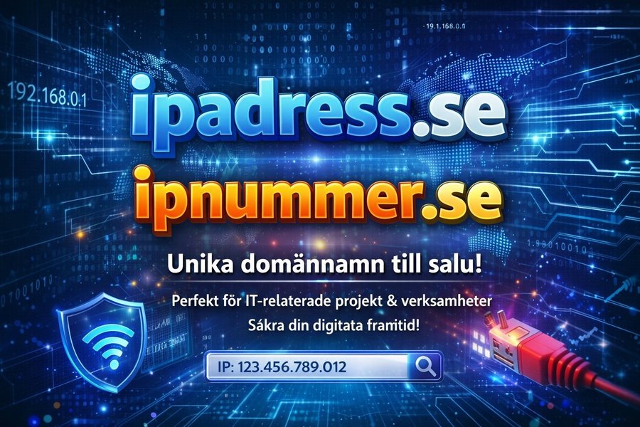 Unika domännamn till salu: ipadress.se och ipnummer.se