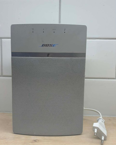 Säljer en vit Bose SoundTouch 10 högtalare. Denna trådlösa högtalare ger dig tillgång till musik via Wi-Fi, Bluetooth och AUX. Elsladd följer med. Har några små nagg i kanten på gallret - se bild
