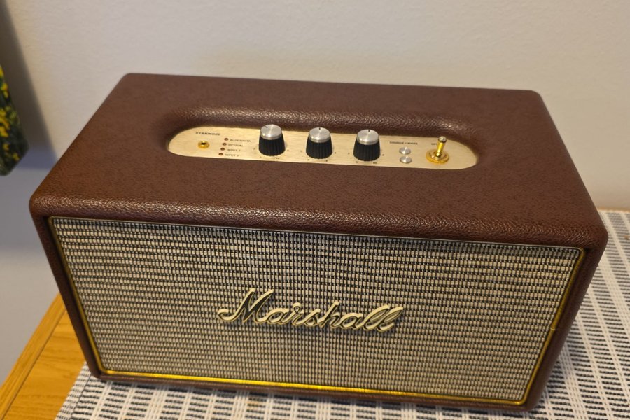 Säljer en Marshall Stanmore högtalare. Den har Bluetooth, optisk ingång samt ingång 1 och 2.