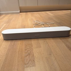 Spelar mycket bra och fungerar med hela Sonos ekosystem. Fint skick men en liten skråma i gallret, inget som påverkar ljudet och syns knappt i verkligheten.