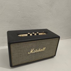 Marshall högtalare i svart design. Högtalaren har en klassisk Marshall-logotyp på framsidan och en robust konstruktion. Den är utformad för att ge ett klart ljud och är enkel att placera i olika miljöer. Dock utan sladd.