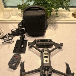 DJI Mavic Pro drönare med fjärrkontroll, batteri, laddare, bärväska och det som syns på bilden. Drönaren är mycket lite använd och ser ut som ny.
