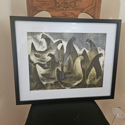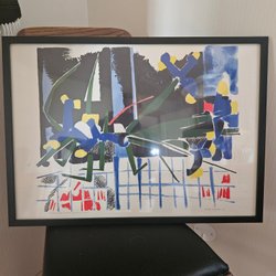 En vacker tavla som föreställer ett landskap. Signerad av Arvid Jorm -51 Tavlan har en unik stil och färgpalett som fångar betraktarens uppmärksamhet.