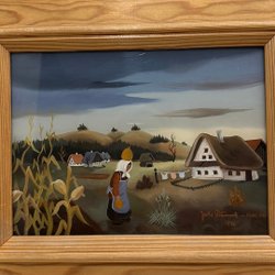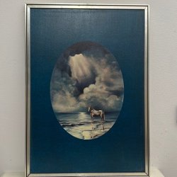 En vacker tryck tavla med motiv av en flodbank. Konstverket är signerat V. Nowak 1987.