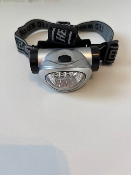 Pannlampa med justerbart band. Utrustad med LED-lampor för belysning. Flera olika lägen.