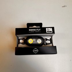Pannlampa med elastiskt band. Lampan är blå och grön med ett gult elastiskt band. Den väger 80 gram. En defekt finns där man stänger för batteri så man behöver ha en liten tejp för att hålla på plats. Funkar som den ska i övrigt