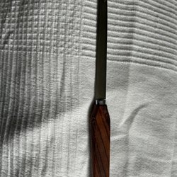 Ficklampa i metall. Lång modell med räfflat grepp. Strömbrytare på sidan. Lämplig för hemmabruk eller utomhusaktiviteter.31cm lång gummit på knappen fattas som man sätter på ficklampan. Glödlampa fattas också men funkar