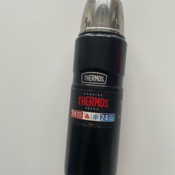 Stor ståltermos av märket Thermos. En rejäl kvalitetstermos gjord i rostfritt stål.