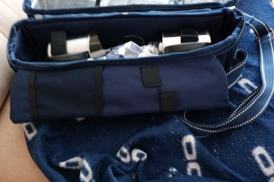 Termosväska med tillbehör och termosar.