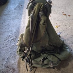 En klassisk grön ryggsäck med läderdetaljer. Ryggsäcken har remmar och spännen för att justera storleken. Den är en klassisk grön ryggsäck i hög kvalité från svenska Haglöfs, och endast använd några få gånger på scoutläger på 60-talet. En kultryggsäck för friluftslivet, långfärdsskridskor, och verkligen värnar om återanvändning och kvalité.