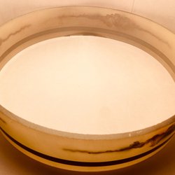Finns tillverkningsbubblor i glaset, rost anlupen och