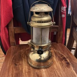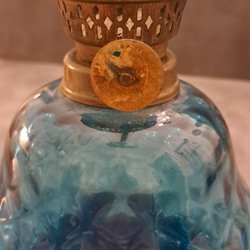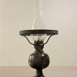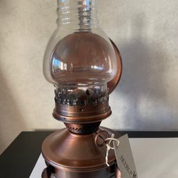En charmig, klassisk fotogenlampa med Texa-glas. Kupan har en lite nagg , se de två sista bilderna. Veke finns kvar. Kupans diameter är ca 17 cm och höjden för fot+kupa är ca 34 cm (dvs exkl. lampglas).