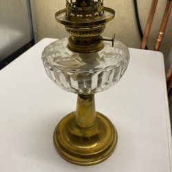 En vacker fotogenlampa i vitt glas. Perfekt som inredningsdetalj eller för användning vid strömavbrott.