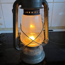Stormlykta för fotogen. Ca 18 cm hög.