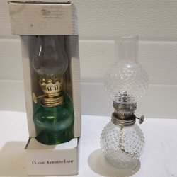 Två fotogenlampor i glas.