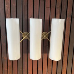 Vägglampa i mässing och glas från Hans Agne Jakobsson, Markaryd.