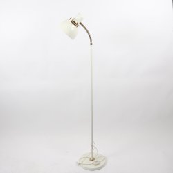 En vacker golvlampa i klassisk och tidlös design i teak. 158 cm hög. Två glödlampor. Strömbrytaren i snöret och lampan kan tändas i två steg. Tygg skärm 40 cm i diameter. Ålderslitage finns men annars hel skärm. Lyser fint. Liten fläck på foten. Kan levereras gratis till Trollhättan Göteborg Varberg Halmstad bara den 25:e. mars vid överenskommelse.