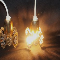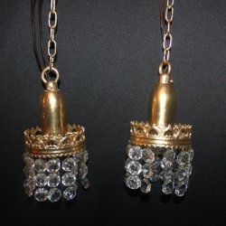 2 st vackra Fönsterbelysningar med guldförgyld stomme och fina kristallprismor