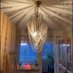 Elegant kristallkrona som sprider vackert ljus i rummet. Perfekt för att skapa en lyxig och inbjudande atmosfär.