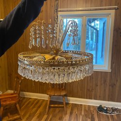 Elegant kristallkrona som sprider vackert ljus. Perfekt för att skapa en lyxig atmosfär i hemmet.