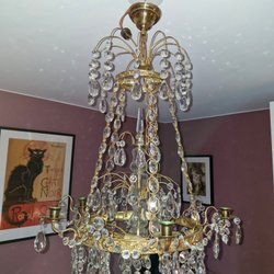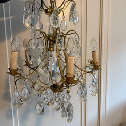 Elegant taklampa med vackra kristaller som sprider ett behagligt ljus. Perfekt för att skapa en lyxig atmosfär i hemmet.