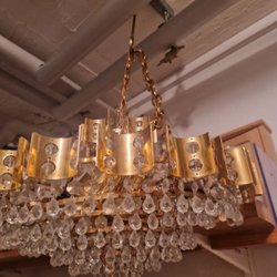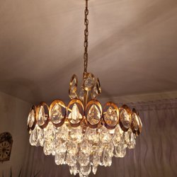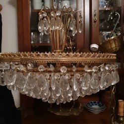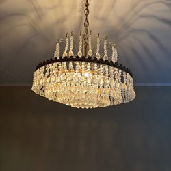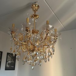 Elegant kristallkrona. Perfekt för att skapa en lyxig och stämningsfull atmosfär i ditt hem. Glödlampor ingår inte. Skick enligt bilder. Kristallerna har damm på sig och behöver putsas.