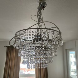 En vacker kristallkrona i mässin och nya fina kristallprismor.