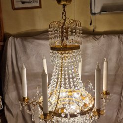 På bilderna är kristallkronan försedd med 2 lampor med kallvitt sken och 2 lampor med varmvitt sken.
