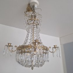 Elegant kristallkrona som sprider ett vackert ljus. Perfekt för att skapa en lyxig atmosfär i hemmet.