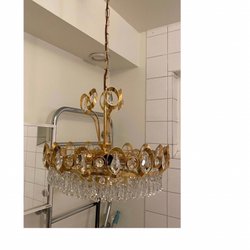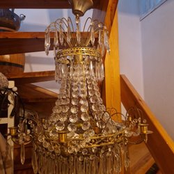 En vacker kristallkrona i mässin och nya fina kristallprismor.