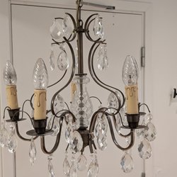 En vacker kristallkrona i mässing.