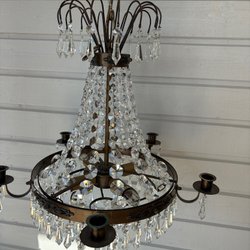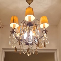 Elegant taklampa med vackra kristaller som sprider ett behagligt ljus. Perfekt för att skapa en lyxig atmosfär i hemmet.