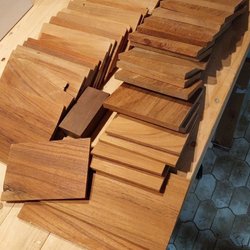 Tre kompletta set med låskistor, handtag, nyckelskyltar och tillhörande skruvar.