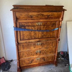 En vacker antik byrå med fem lådor. Perfekt för förvaring. Höjd 110, bredd 81, djup 49 cm.