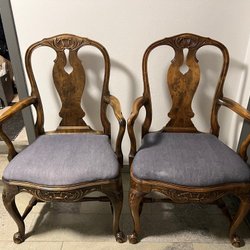 Fyra stolar i trä av ”sportstugemodellen” från 1940-talet. En av stolarna är i behov av ny lack.