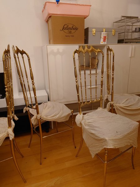 6 st halvt antika stolar chiavari i mässing. Stabila ok bruksskick . Vissa ngt sne.