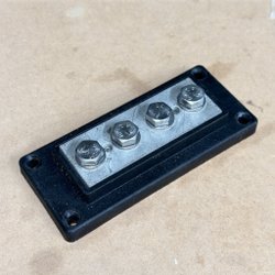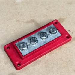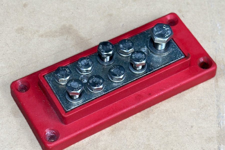 Kopplingsplint från Skyllermarks med 1xM8 + 8xM6-anslutningar. Nypris: ~350kr