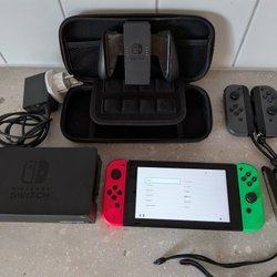 Nintendo Switch med tillbehör i mycket bra skick, Inkluderar dockningsstation, joy-cons, skyddsfodral och helt ny original laddare.
