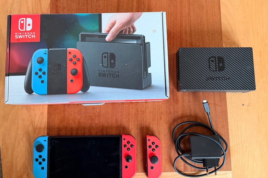 Nintendo Switch med tillbehör.