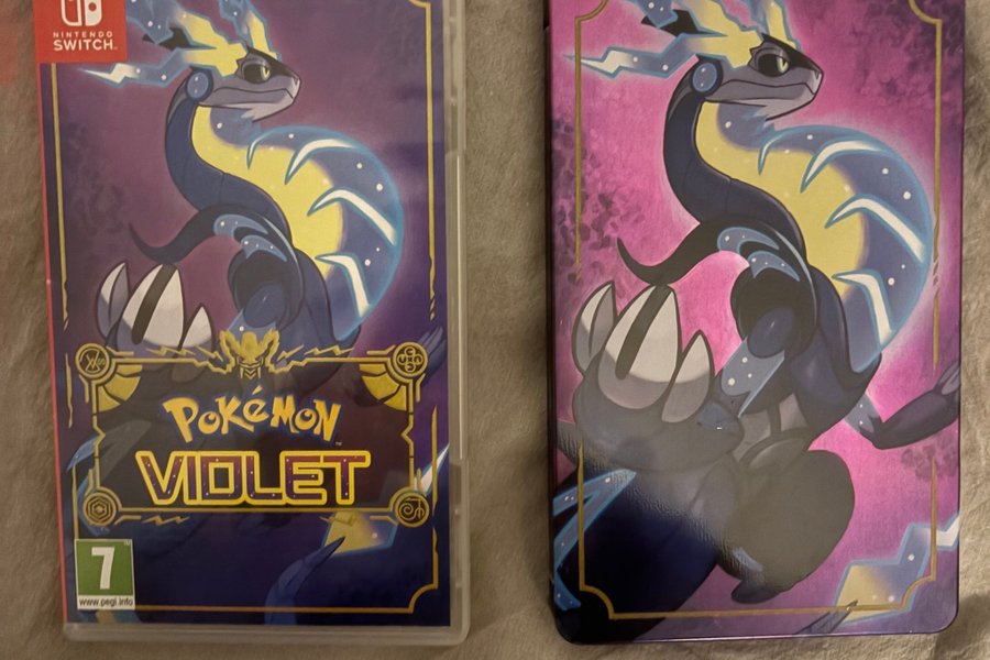 Pokemon Violet till Nintendo Switch. Spelet kommer med ett steelbook.