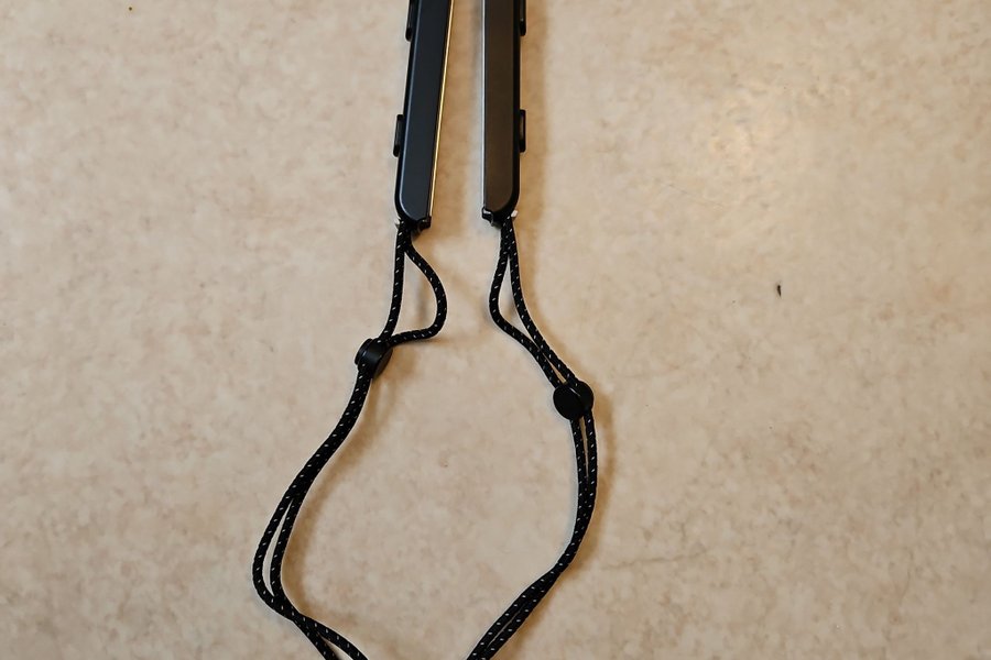 Ett par svarta handledsremmar för Nintendo Switch Joy-Con-kontroller. Remmarna har justerbara spännen för säker fastsättning under spel.