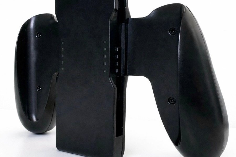 Handkontrollgrepp för Nintendo Switch. Greppet är svart och utformat för att ge ett bekvämare sätt att hålla konsolen under spel. Det har en ergonomisk design som förbättrar spelupplevelsen.