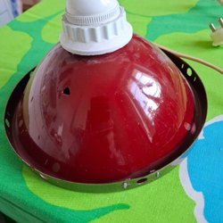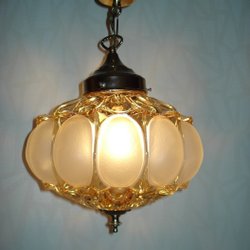 Taklampa med färgat glas. Höjd ca 25cm. Ej funktionstestad säljes i befintligt skick