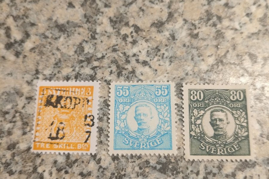 Tre klassiska Svenska frimärken. Att ha som luckfyllare.