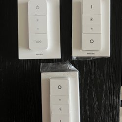 Säljer en Philips Hue Dimmer Switch. Perfekt för att styra dina Philips Hue lampor trådlöst. Enkel att installera och använda. “Styr belysningen var som helst i huset. Berika ditt system med Philips Hue dimmer switch och njut av smidig trådlös dimning. Strömbrytaren fungerar som en vanlig väggströmbrytare och dimmer. Placera den var du vill, med hjälp av skruvar eller den självhäftande tejpen på strömbrytarens bakplatta. Funktioner:Fungerar med Alexa för röststyrning (hubb krävs, Alexa-enhet och hubb säljs separat). Dämpa eller öka ljusstyrkan snabbt på upp till 10 av rumsbelysningen för spel, fester och filmer från soffan eller sängen. Den här batteridrivna dimmern med fjärrkontroll kräver Hue Bridge (säljs separat) för att få en fullständig Hue-upplevelse och justerar smidigt och trådlöst belysningens intensitet utan någon extra installation. Montera Hue Dimmer Switch var som helst med skruvar eller tejp (båda säljs separat) och styr med fjärrkontrollen eller Philips Hue-appen med Philips Hue Bridge.”